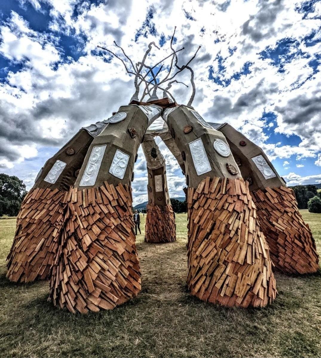 Relevé was fabricated using diseased larch trees from the Chatsworth House estate. Standing at 30’ tall, Relevé invited participants to contribute stories and notes to the facade of the structure. Besides public participation, Relevé was built with help from the local community as well as local school children from villages located in Bakewell, Sheffield, and Chesterfield.